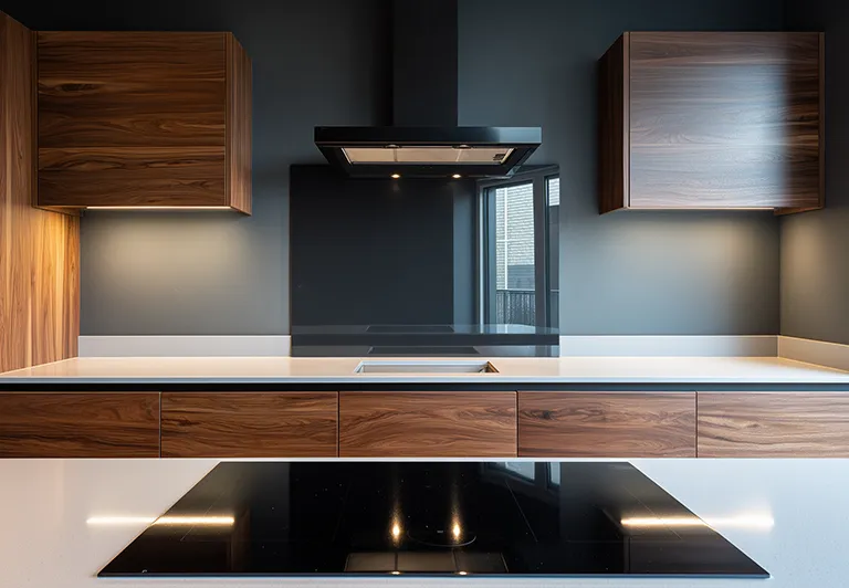 Black or dark glass splashbacks are perfect for creating a sleek, sophisticated kitchen aesthetic.